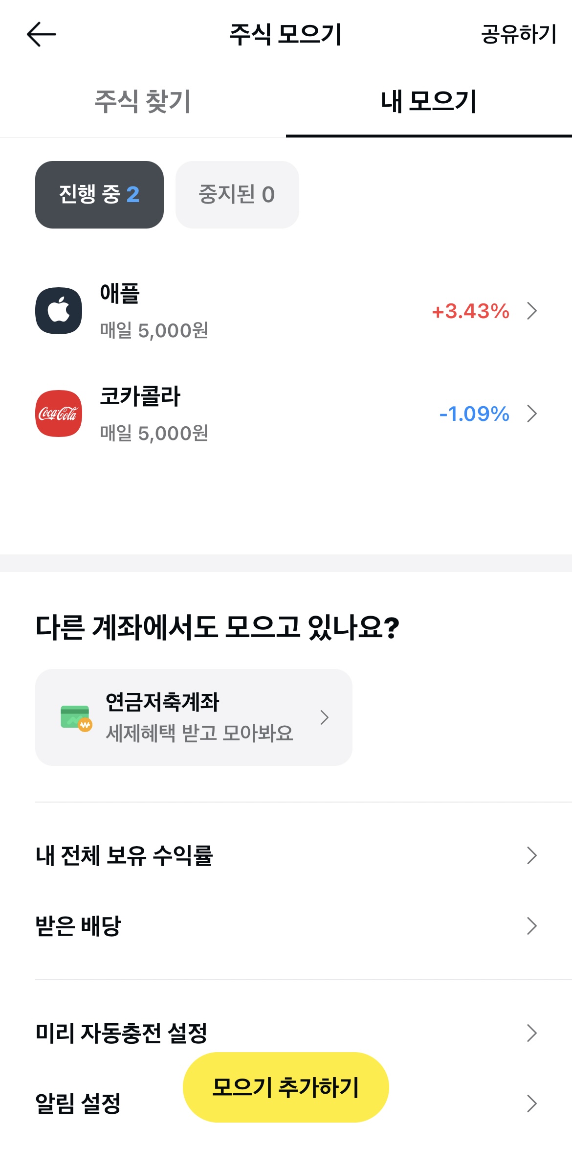 꾸준히 카카오페이증권 내의 주식 모으기로 진행할 것이며,