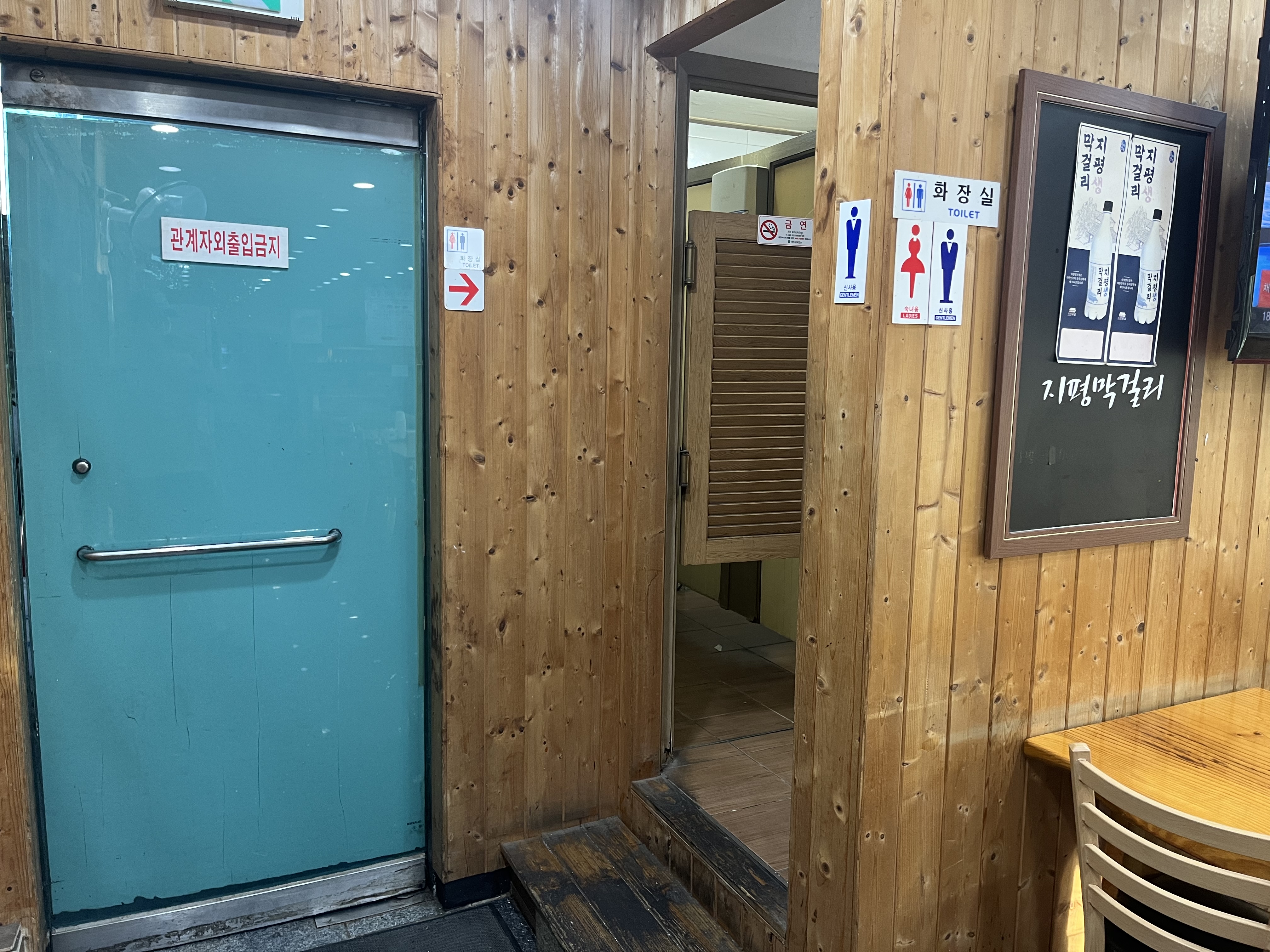 화장실은 매장 구석에 위치해있습니다.